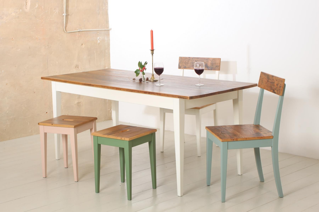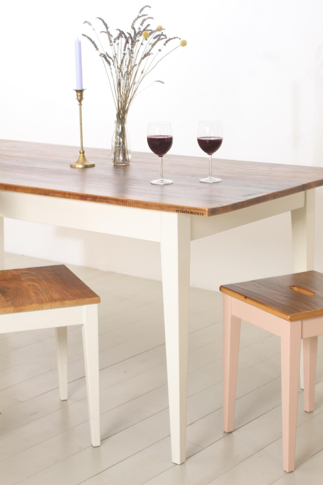 Klassischer Zargentisch mit Platte aus historischen Bodendielen