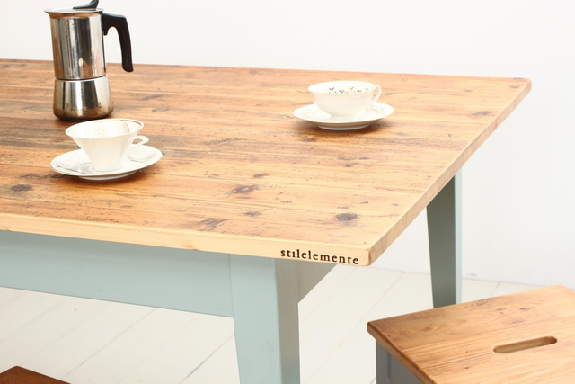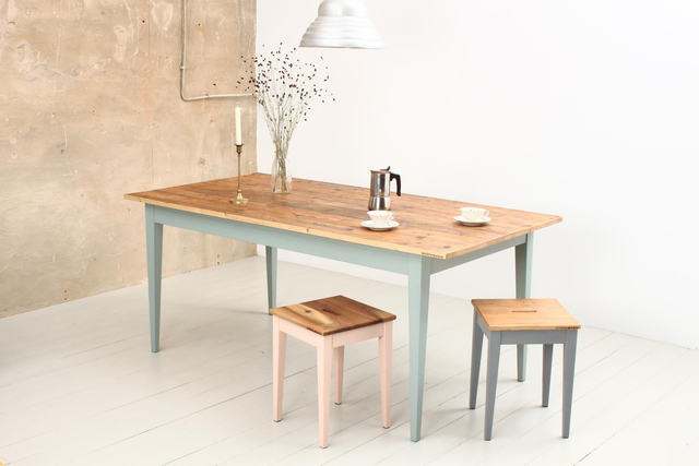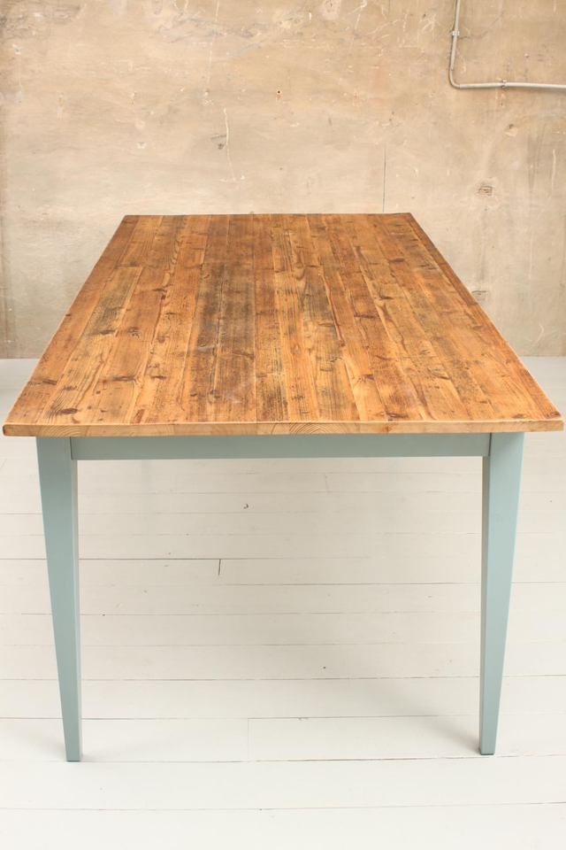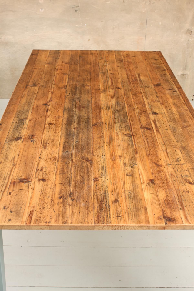Klassischer Zargentisch mit Platte aus historischen Bodendielen