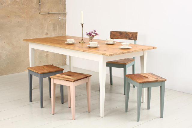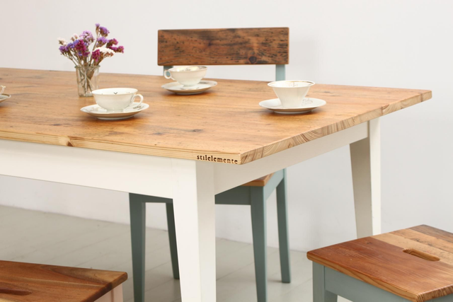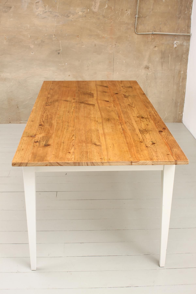 Klassischer Zargentisch mit Platte aus historischen Bodendielen