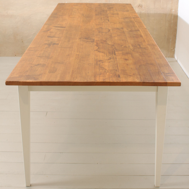 Klassischer Zargentisch mit Platte aus historischen Bodendielen