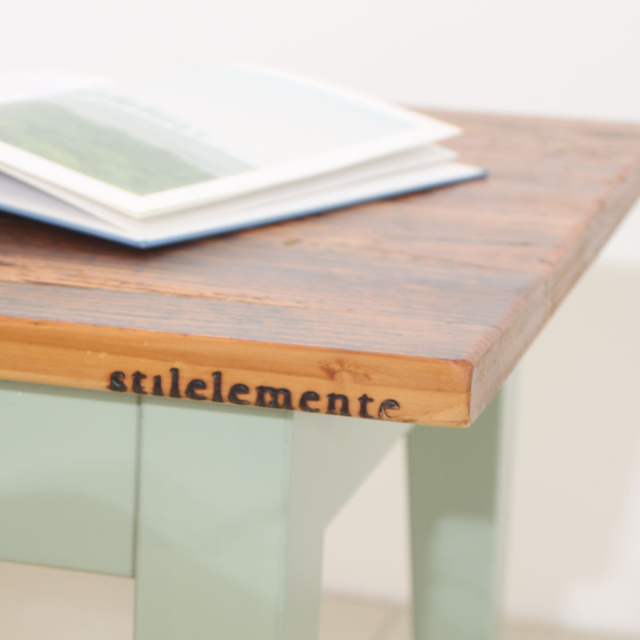 Platte: Tannen/Fichtenholz aus 100-300 Jahre alten Holzfußböden, Oberfläche Hartwachsöl.